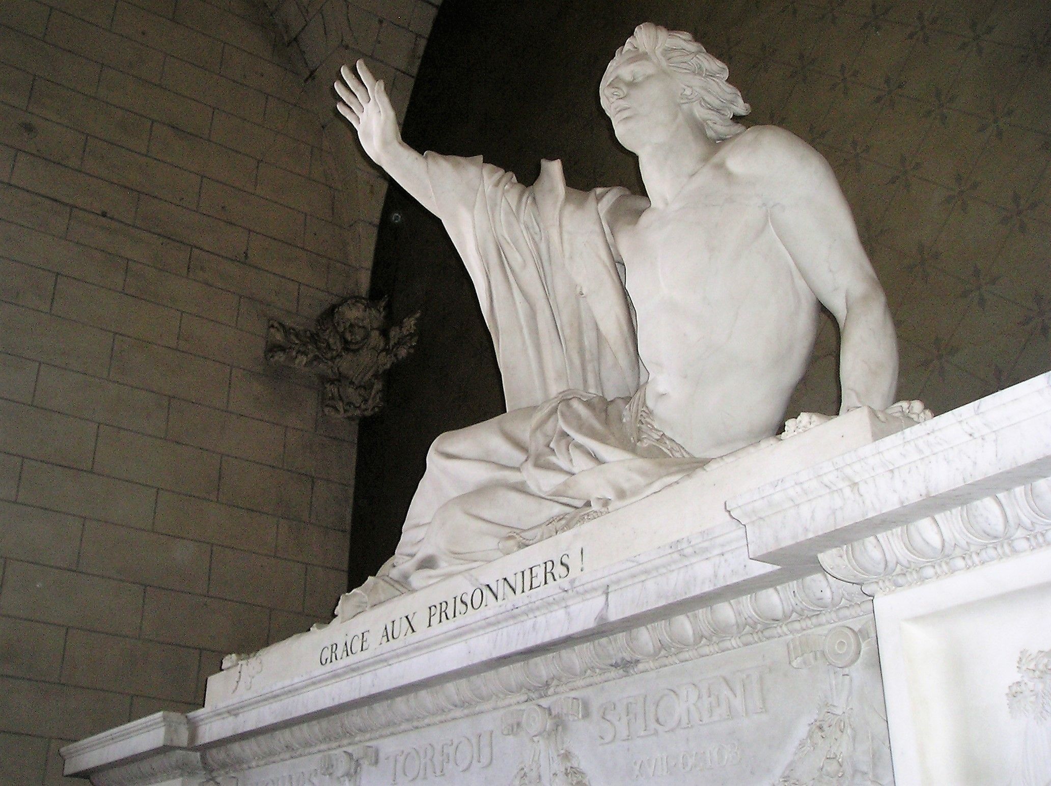 Trente ans plus tard, le fils de l'ébéniste, devenu sculpteur, républicain et franc-maçon immortalise le général Charles Melchior Artus de Bonchamps, royaliste et très chrétien, dans le marbre en signe de gratitude.